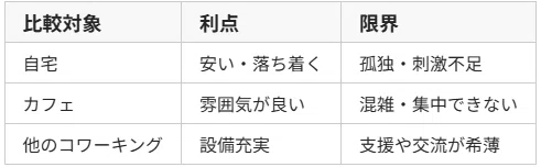 確かに、家じゃ集中できないし、カフェはうるさい。」