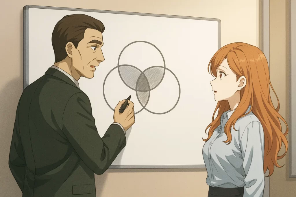 鈴木はホワイトボードに3つの円を描いた。それぞれが重なり合う部分に光が当たっている。
